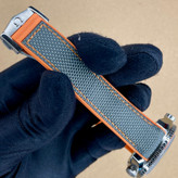 این ساعت ظاهر برجسته و مقاومی دارد و وزن 180 گرمی آن حس لوکس بودن را به مچ دست منتقل میکند. صفحه آنالوگ با رنگ طوسیو قاب نقرهای و نارنجی، طراحی زیبا و مدرنی به آن بخشیده است. نوع قفل ضامندار، باعث ایمنی بیشتر در استفاده روزانه میشود. این ساعت با گارانتی یکساله رنگ و موتور عرضه میشود.