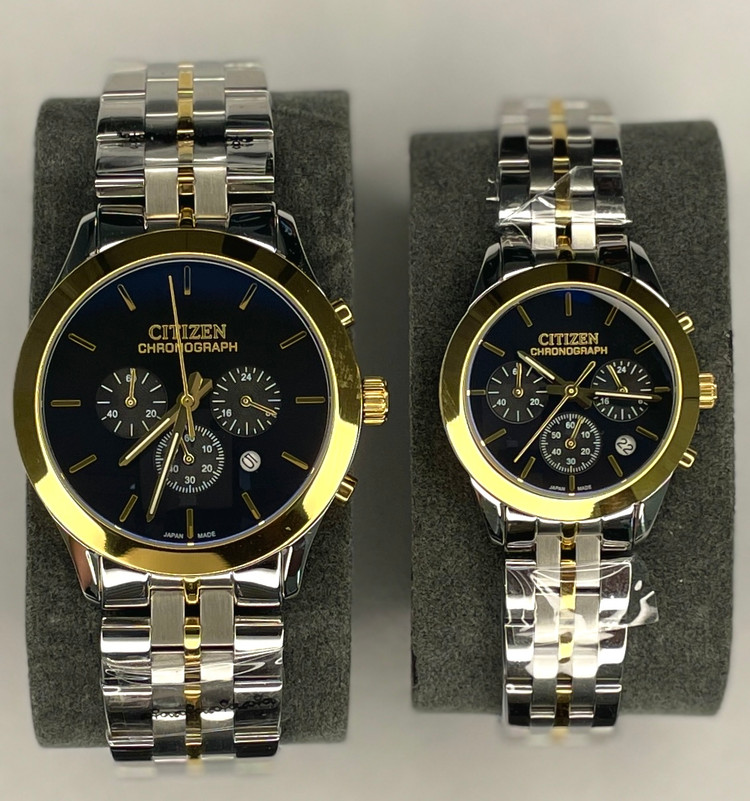 ساعت مچی عقربه ای ست زنانه و مردانه سیتیزن کد 105 بی شک جزو شیک ترین و خاص ترین ساعت های مچی عقربه ای ست می باشد. این ساعت مچی عقربه ای ست زنانه و مردانه سیتیزن بدلیل ترکیب رنگ های خاص و زیبا نظر هر مخاطبی را به جلب میکند. جنس بند و قاب این ساعت ست استیل درجه 1 آنتی آلرژی بوده و دارای 3 موتور فعال کزنومتردار و از برند ژاپنی میوتا می باشد.