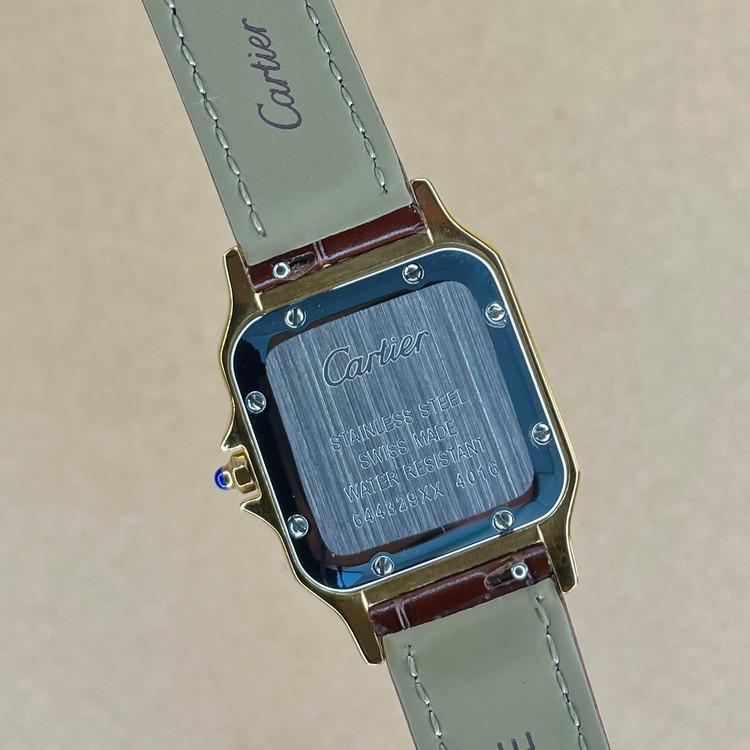 این ساعت مچی کلاسیک از سری Santos-Dumont کارتیه یک نسخه هایکپی بسیار با کیفیت است که با طراحی مربعی شکل و بند چرمی مشکی، انتخابی مناسب برای استایلهای رسمی و روزمره است. صفحه نقرهای با اعداد رومی و عقربههای سرمه ای رنگ، نشان دهنده طراحی سنتی کارتیه میباشد که همچنان محبوبیت خود را حفظ کرده.