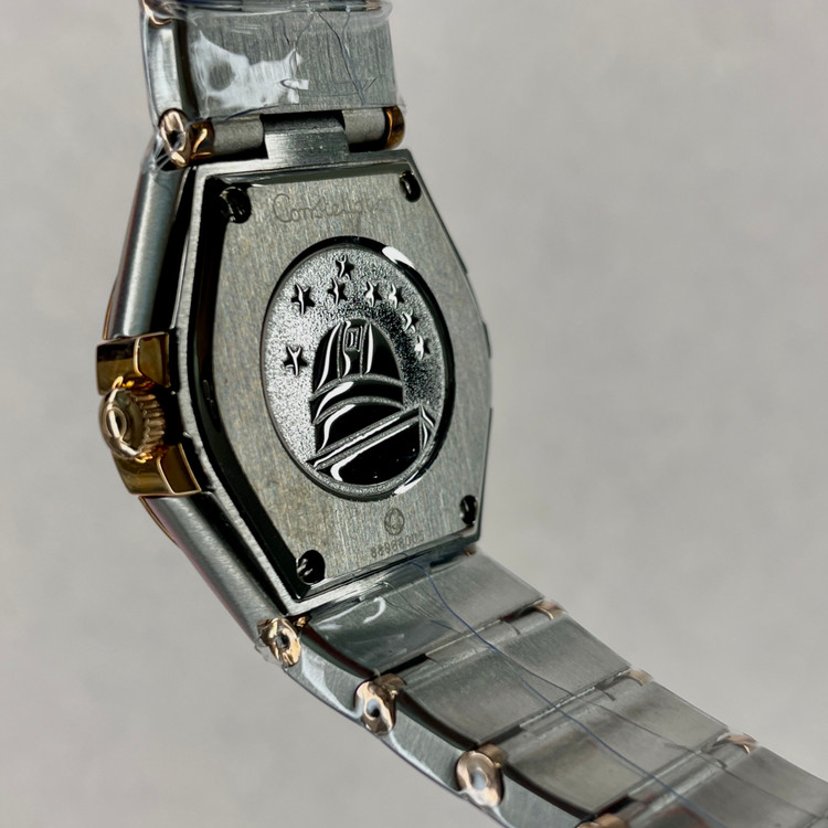 صفحه سفید صدفی منحصر به فرد به همراه نگین های کار شده در قاب ساعت، نگاهها را به خود خیره میکند و جلوه گر وقار و زیبایی در دستان شما خواهد بود.