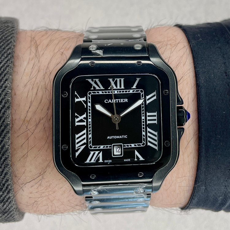 ساعت مردانه کارتیه مدل سانتوس اتوماتیک بند فلزی مشکی