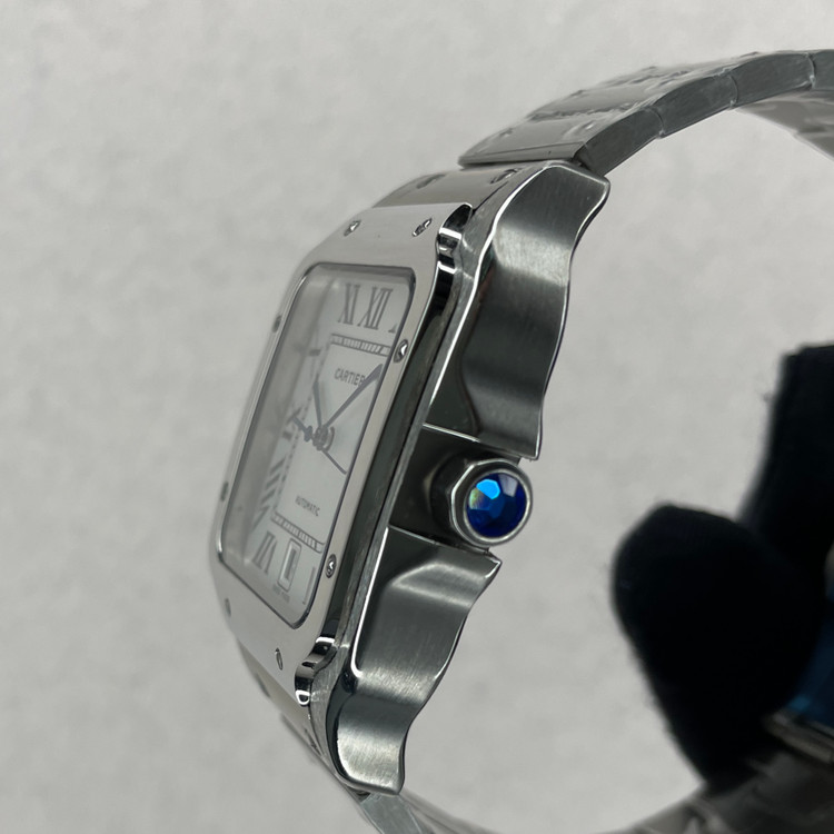 این ساعت مچی کلاسیک از سری Santos کارتیه یک نسخه هایکپی بسیار با کیفیت است که با طراحی مربعی شکل، ترکیب قاب مات و براق و بند فلزی کاملا مشابه اصل، انتخابی مناسب برای استفاده در مهمانی ها و مکانهای رسمی و روزمره است.