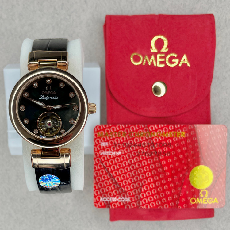 ساعت زنانه امگا مدل لیدی ماتیک بند چرمی مشکی