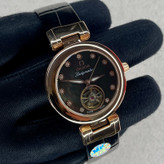 صفحه مشکی صدفی با ایندکس های (نمایشگر ساعت) نگین کاری شده از جلوه های خاص این ساعت است، که تمام نگاه ها را مجذوب دست شما خواهد کرد.