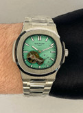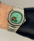 رنگ صفحهی آبی تیفانی و بدنه نقرهای، ساعت پتک فیلیپ اتوماتیک Patek Philippe Nautilus را به گزینهای بینظیر برای علاقهمندان به ساعتهایی با ظاهری متفاوت تبدیل میکند.