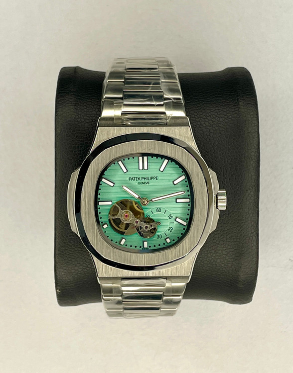 رنگ صفحهی آبی تیفانی و بدنه نقرهای، ساعت پتک فیلیپ اتوماتیک Patek Philippe Nautilus را به گزینهای بینظیر برای علاقهمندان به ساعتهایی با ظاهری متفاوت تبدیل میکند.