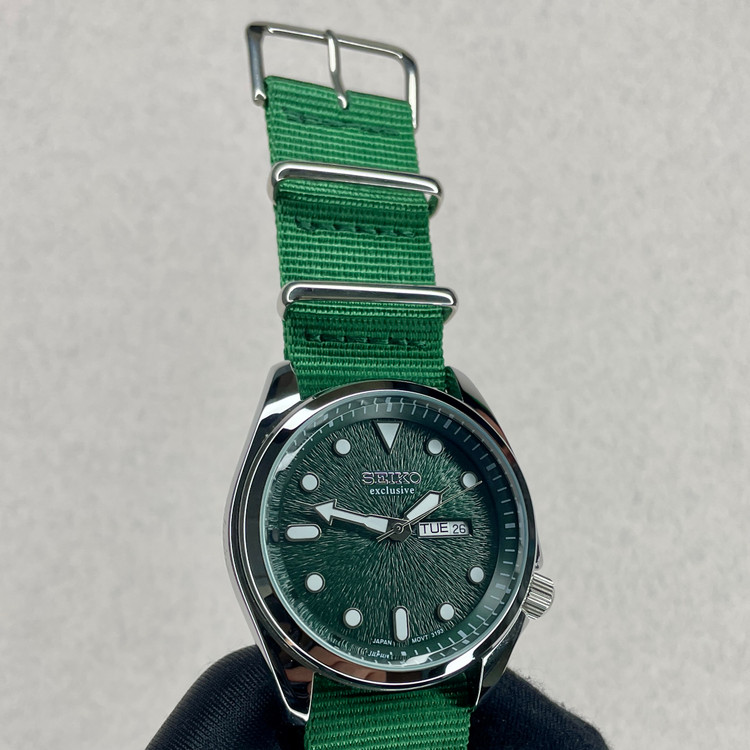 اگر به دنبال یک ساعت خاص، شیک و متمایز هستید، ساعت Seiko Exclusive با صفحه آبی سبز بافتدار گزینهای ایدهآل برای شماست. این مدل با ترکیب هنرمندانهای از طراحی کلاسیک و جزئیات مدرن، به راحتی توجه هر بینندهای را جلب میکند.