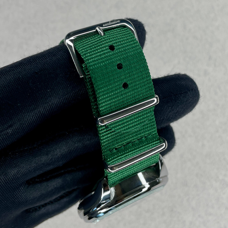 طراحی منحصر بهفرد صفحه این ساعت با بافت خورشیدی سبز رنگ، نور را به شکلی زیبا منعکس میکند و جلوهای لوکس و خاص به ساعت میدهد.