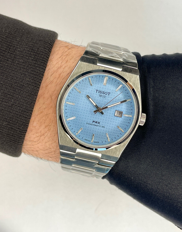 ساعت تیسوت پی ار اکس TISSOT PRX پرطرفدارترین مدل ساعت مچی برند تیسوت می باشد.با طراحی کلاسیک و مدرن مشابه سری ساعت های رویال اوک برند اودمار پیگه توانسته است نظر بسیاری از علاقهمندان به ساعت را به خود جلب کند. این ساعت مچی با بدنه استیل ضد زنگ با کیفیت و ظاهری شیک مناسب برای استایل های اسپرت و روزمره می باشد.