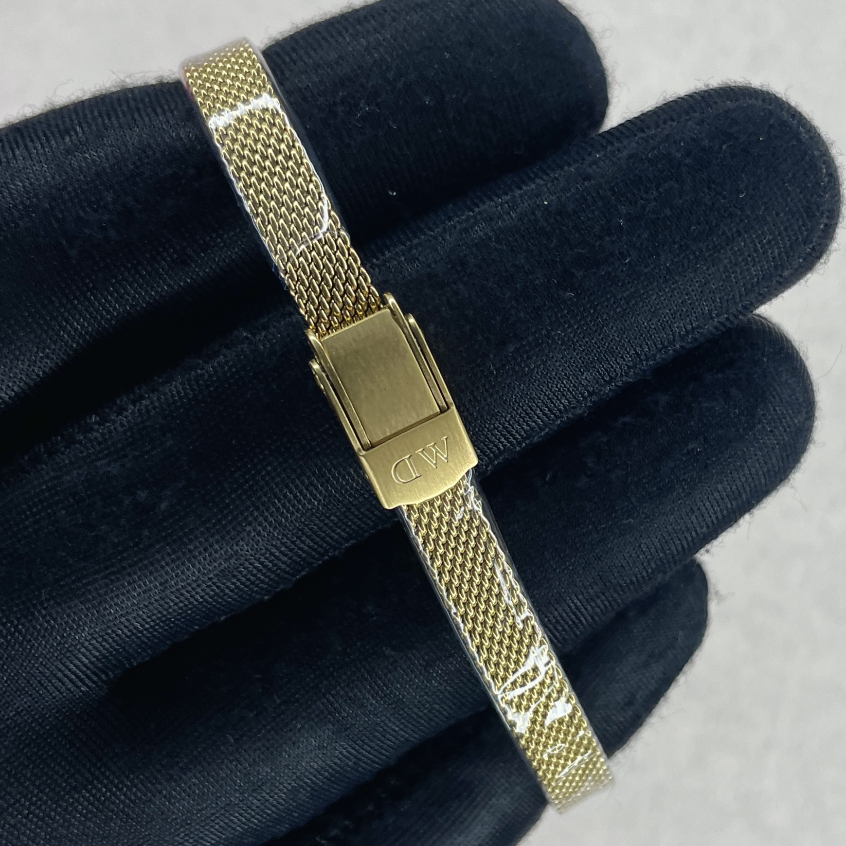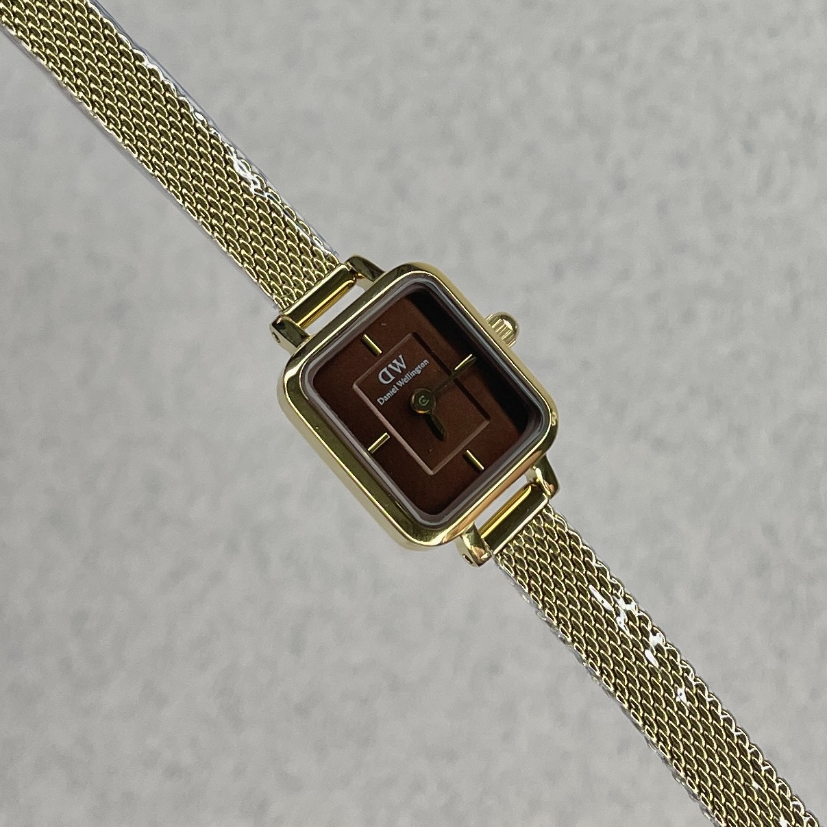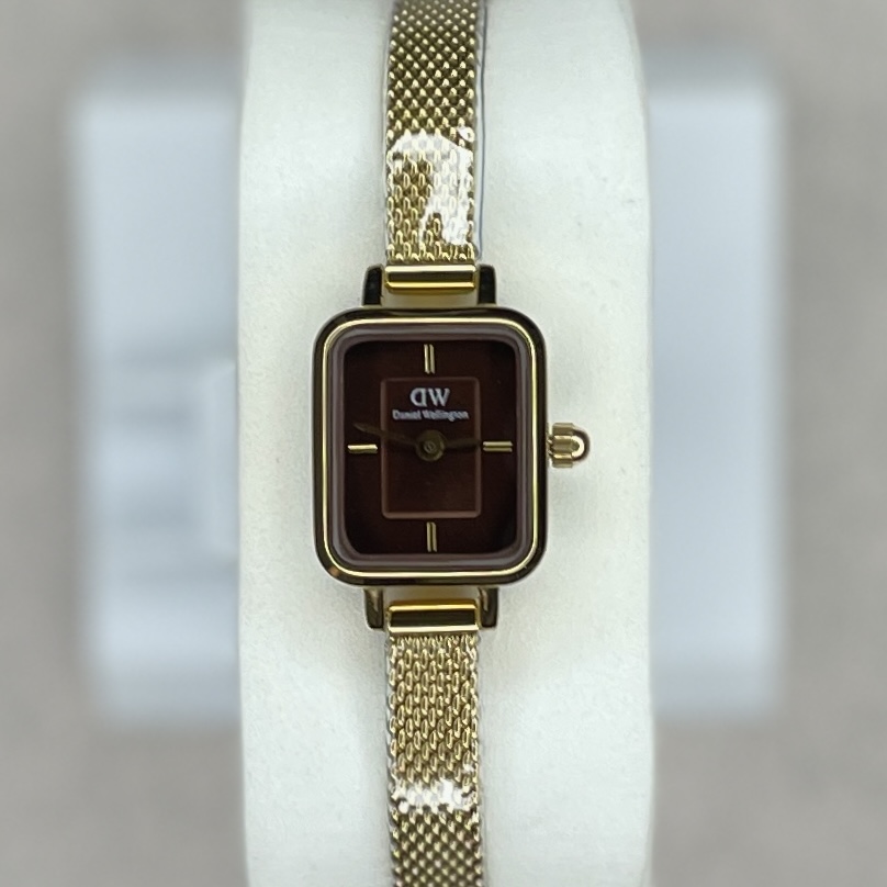 ساعت زنانه دنیل ولینگتون مستطیلی بندحصیری طلایی صفحه قهوه ای