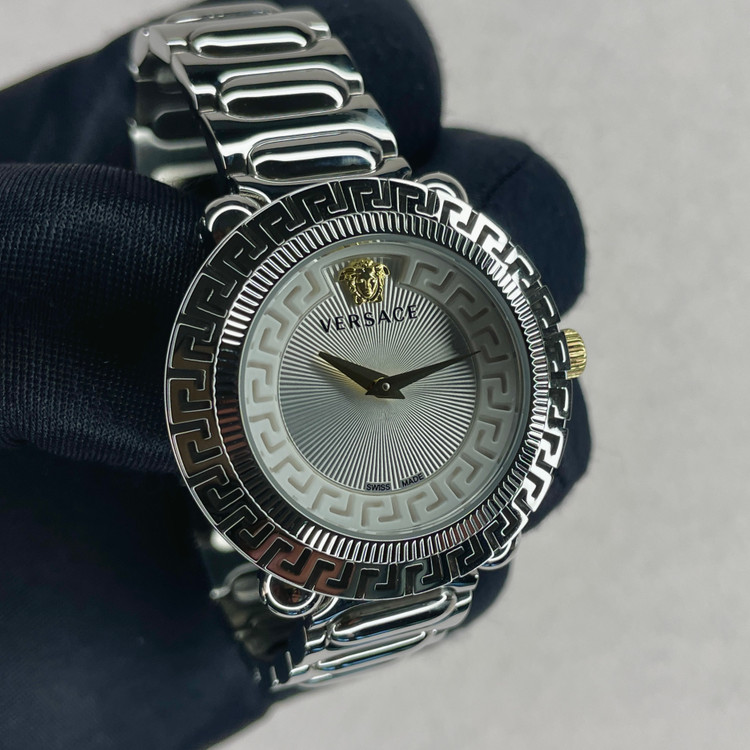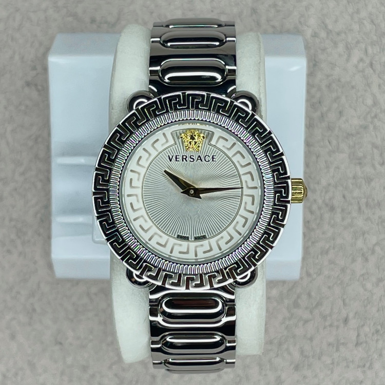 ترکیبی از طراحی جسورانه و کیفیت ساخت است. این مدل با صفحهی استخوانی و الگوی هندسی پیچیده، فوراً نگاهها را به خود جلب میکند. لوگوی معروف سر مدوسا در بالای صفحه، امضای اصالت و سبک منحصربهفرد ورساچه را نشان میدهد.