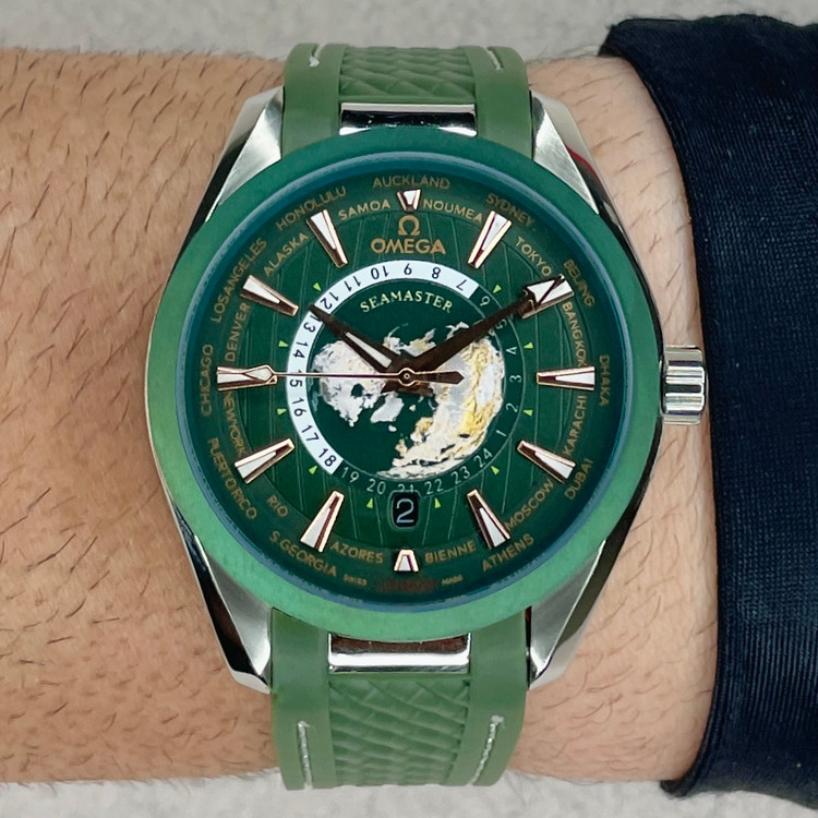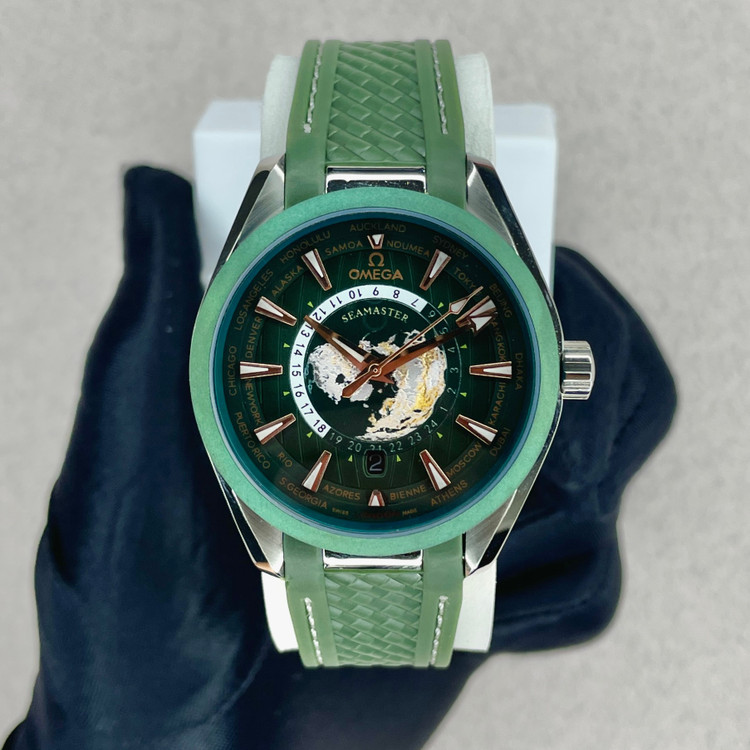 ساعت مردانه امگا سیمستر مدل ورد تایم اتوماتیک OMEGA Seamaster Aqua Terra World Time