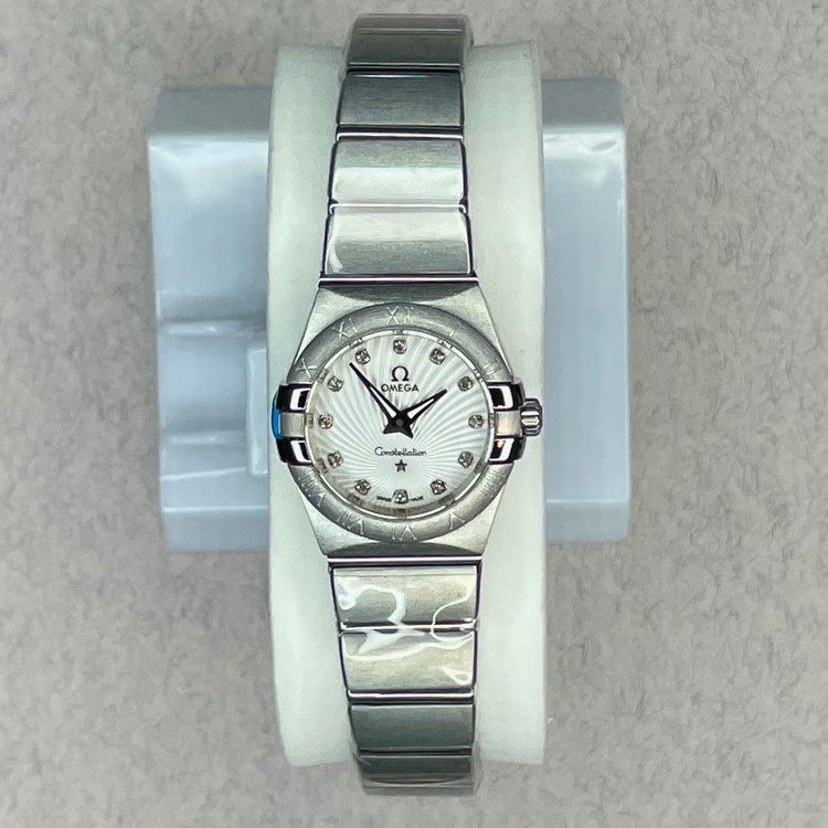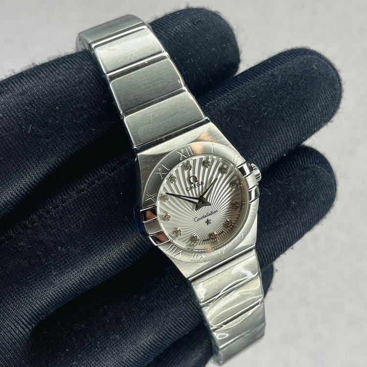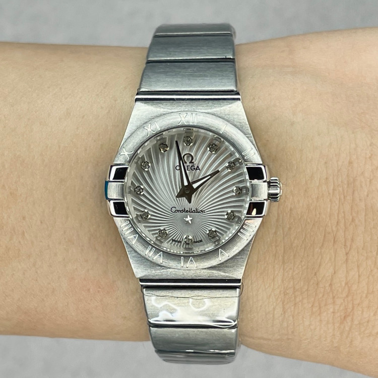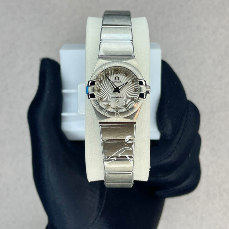 ساعت زنانه امگا مدل کانسلیشن ایندکس نگینی نقره ای سایز Small