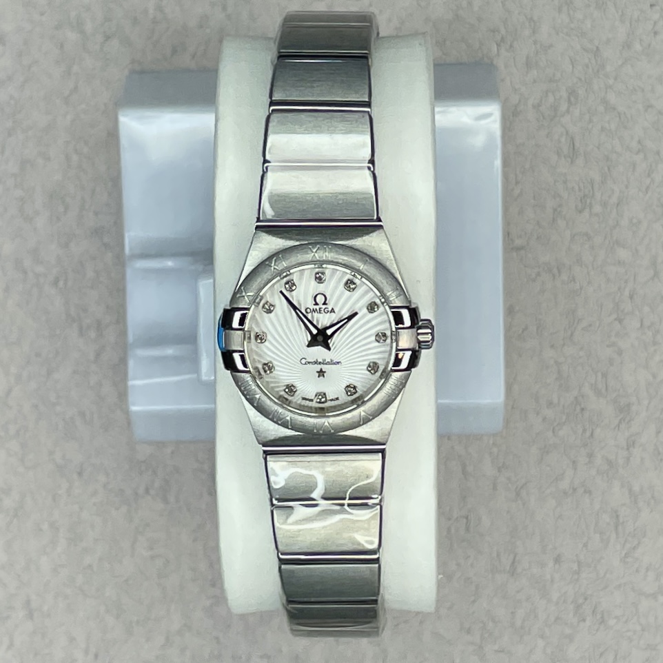 ساعت زنانه امگا مدل کانسلیشن ایندکس نگینی نقره ای سایز Small
