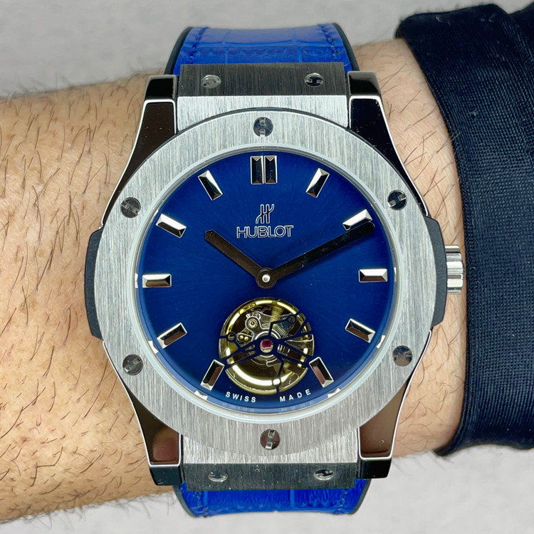 ساعت ارائهشده یکی از مدلهای خاص برند معتبر Hublot از سری Classic Fusion است؛ سریای که با ترکیب طراحی مدرن، کیفیت ساخت سوئیسی و موتوری دقیق که کارکرد آن از دریچه طراحی شده در صفحه و چنین پشت ساعت قابل مشاهده بوده، جایگاه ویژهای در میان ساعتهای لوکس دارد.