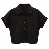 شومیز آستین کوتاه زنانه کراپ طرح ساده رنگ مشکی