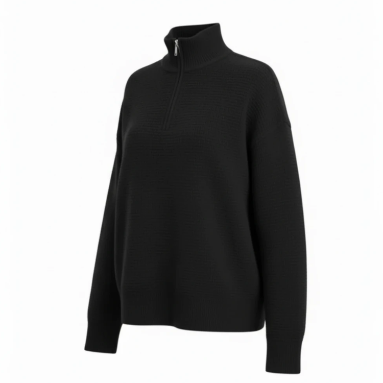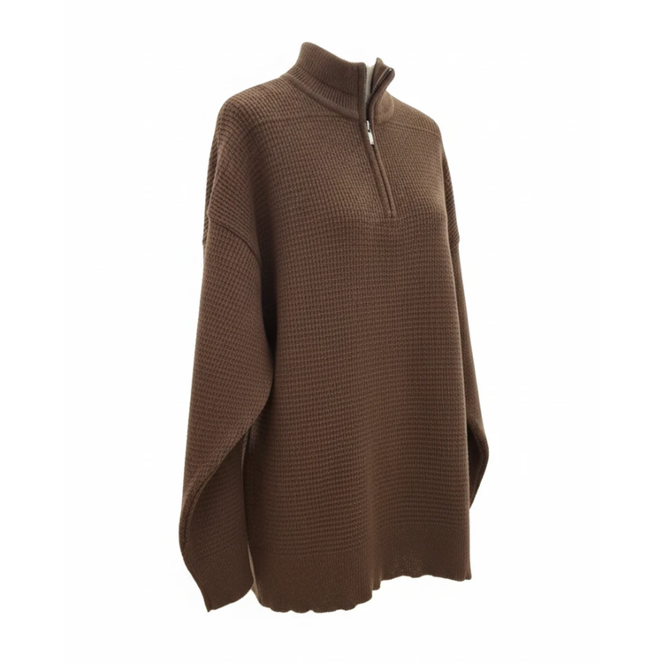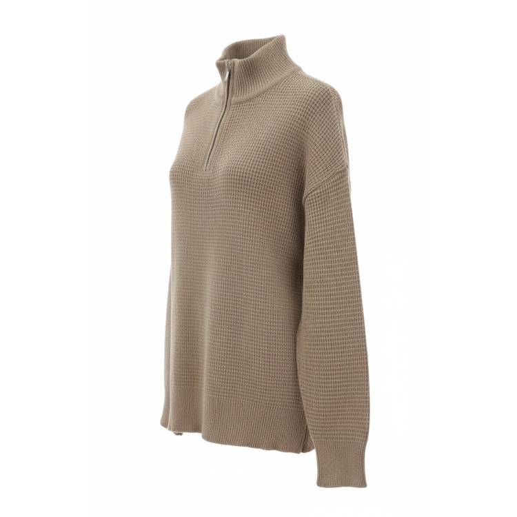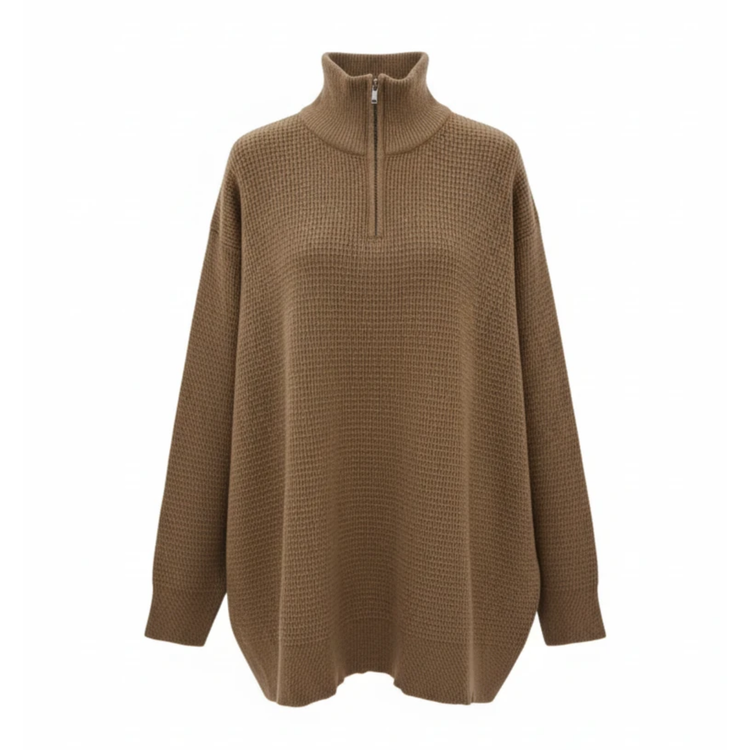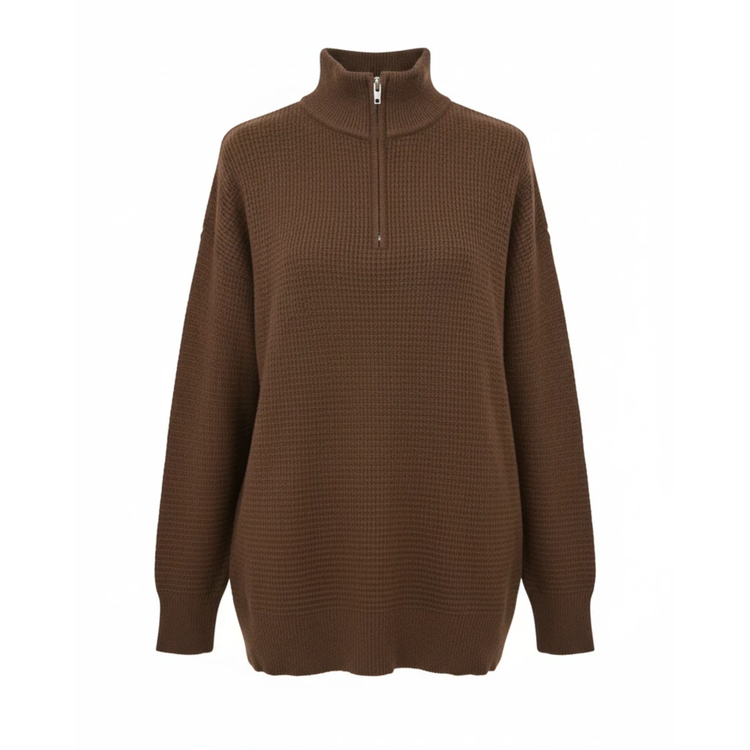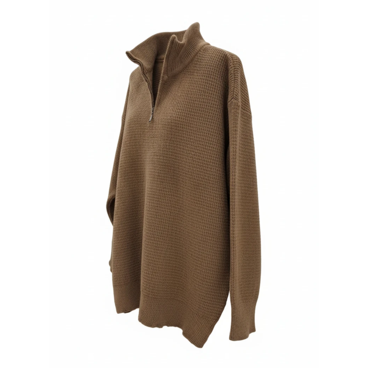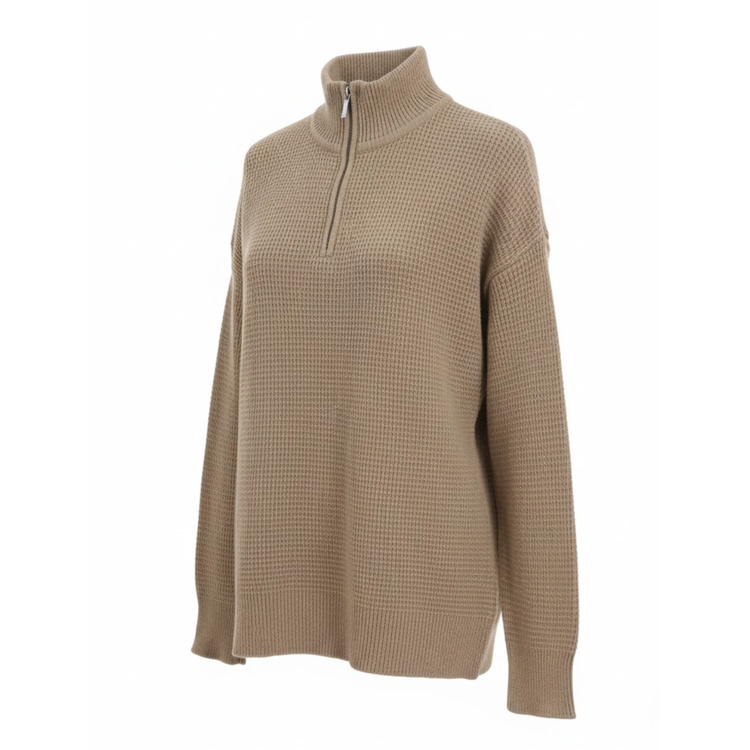 ژاکت زنانه نیم زیپ بافت بیسکوئیتی