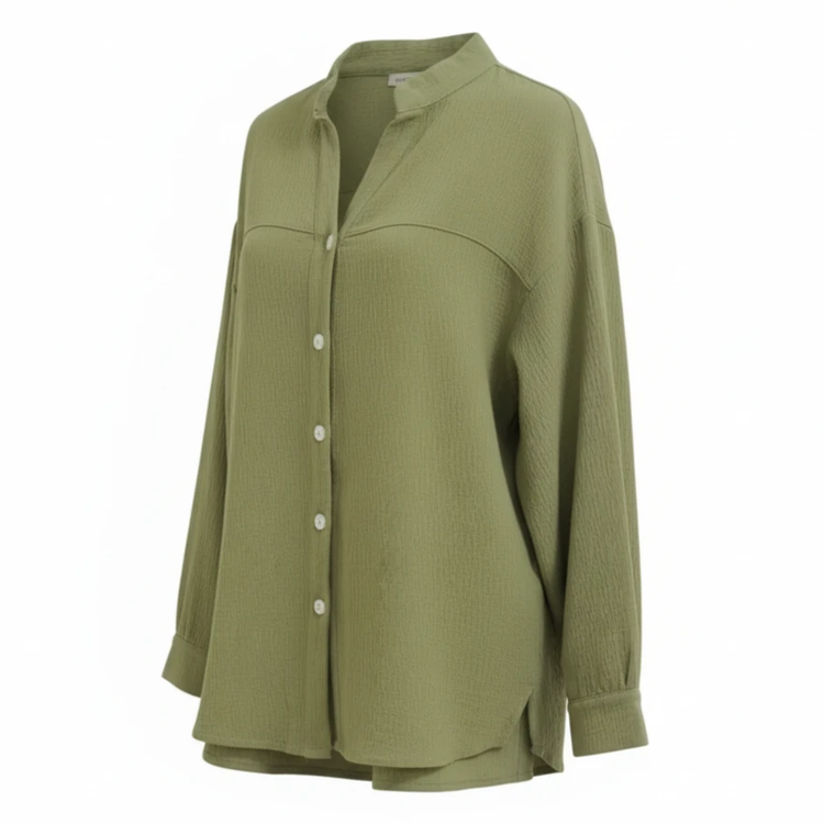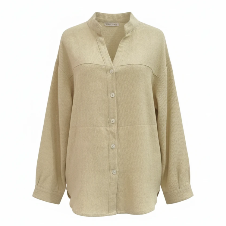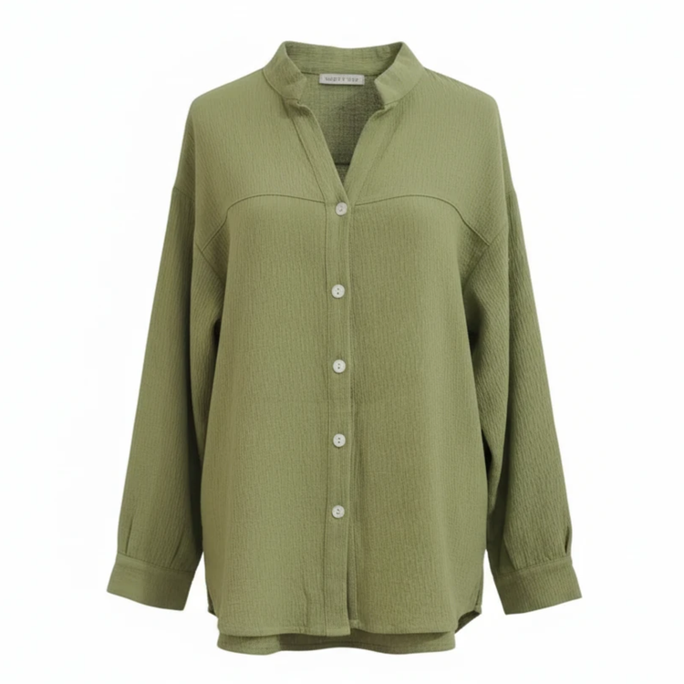این شومیز با جنس کتان باکیفیت، حس راحتی و لطافت را به شما هدیه میدهد. طراحی راسته و یقه ایستاده آن، ظاهری شیک و مدرن به شما میبخشد. با قد 70 سانتیمتر و عرض 54 سانتیمتر، این شومیز به خوبی بر روی بدن نشسته و استایلی جذاب ایجاد میکند. دکمههای جلویی آن به شما امکان میدهد تا به راحتی آن را بپوشید و درآورید. این شومیز بدون جیب طراحی شده است تا ظاهری ساده و مینیمال داشته باشد.