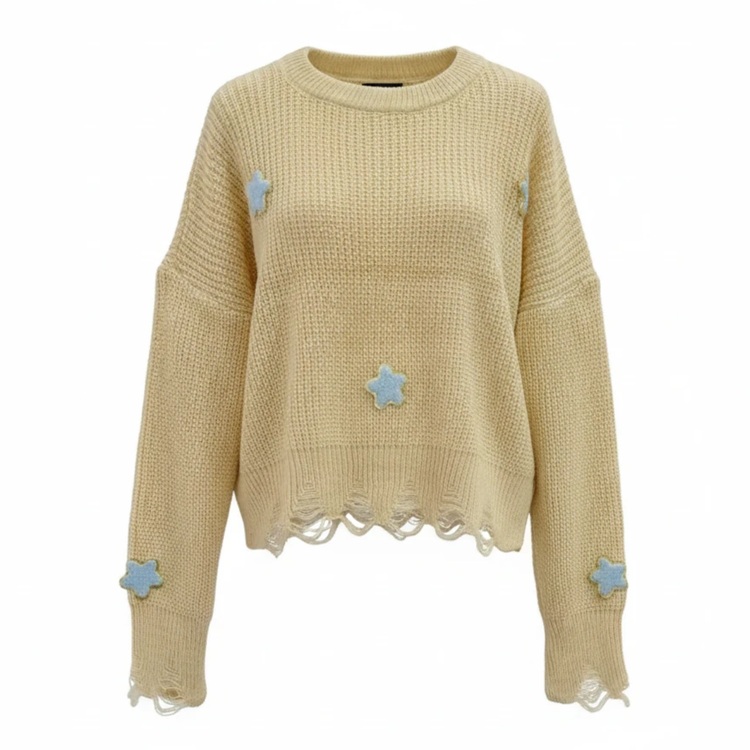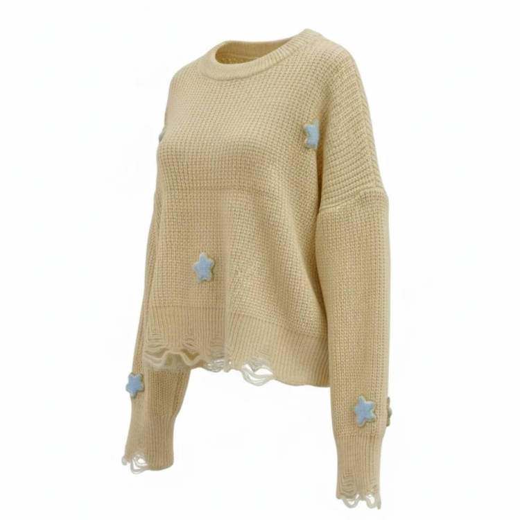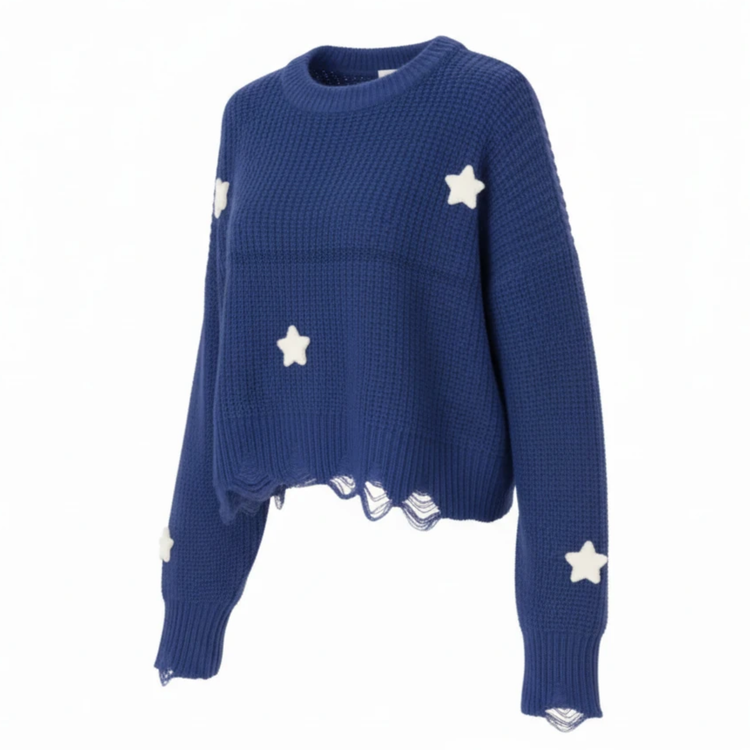این ژاکت با طراحی یقه گرد و مدل کراپ، جلوهای مدرن و جوانپسند به استایل شما میبخشد. جنس بافت آن نرم و لطیف بوده و برای استفاده در فصول سرد سال بسیار مناسب است. قد لباس 53 سانتیمتر و عرض آن 67 سانتیمتر است که به راحتی و آزادی حرکت کمک میکند. طرح ستارهای روی این ژاکت، جلوهای خاص و متفاوت به آن داده است. این محصول بدون جیب و کلاه طراحی شده و به صورت جلو بسته است که سادگی و شیک بودن را بهخوبی ترکیب کرده است.