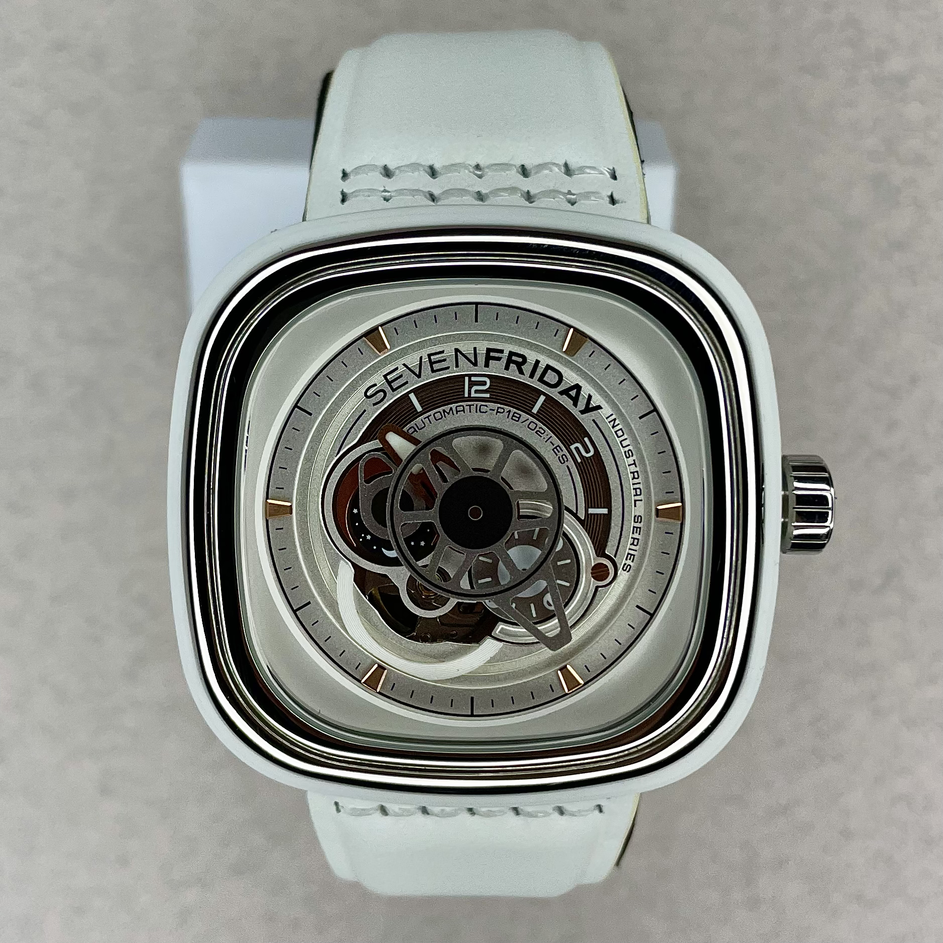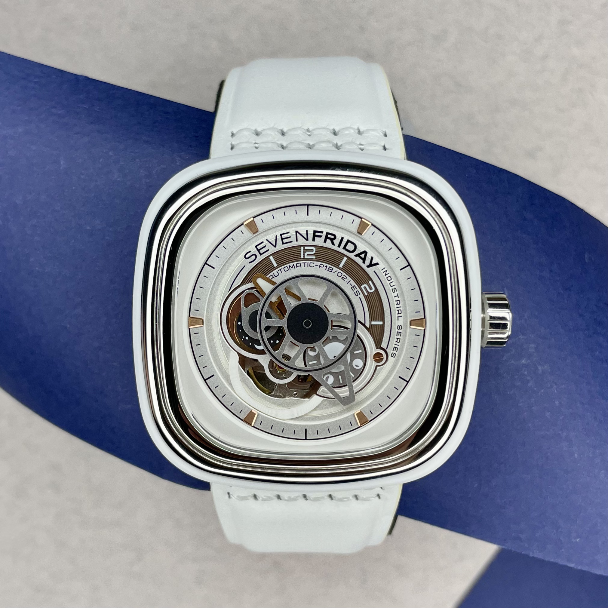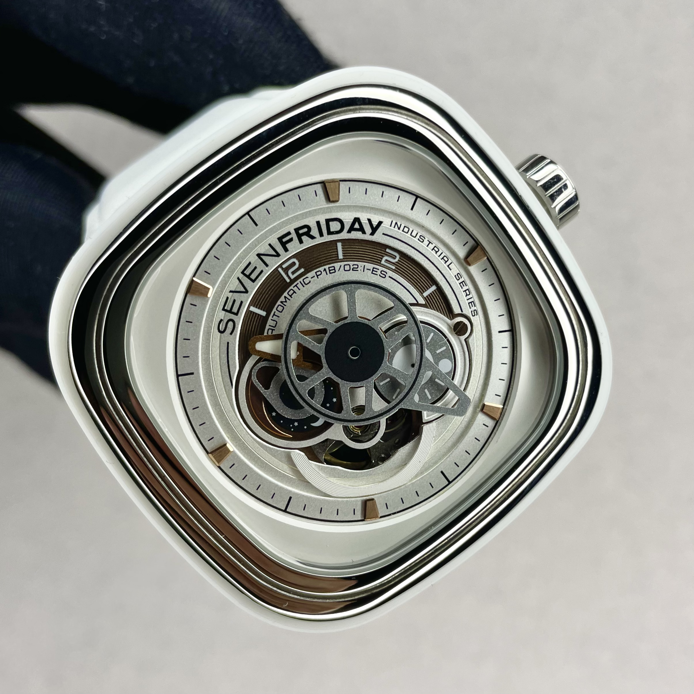 ساعت P1B/02 BRIGHT با ریسیدن پنبه به نخهای کاربردی، از ماشینآلات ریسندگی پنبه صنعتی الهام گرفته است.