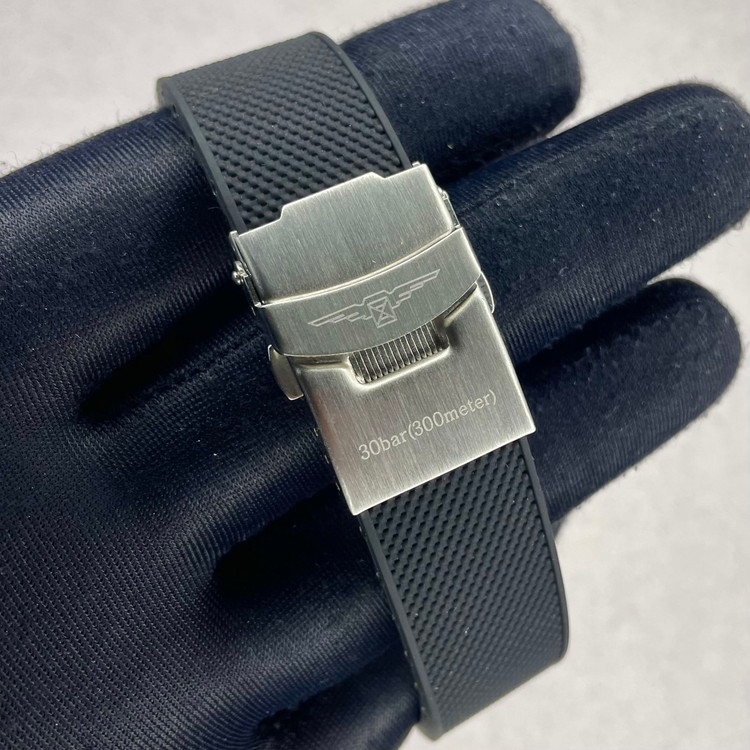 بند رابر (لاستیکی)، با قفل تاشوی ایمنی دوگانه و مکانیزم باز شدن با فشار.