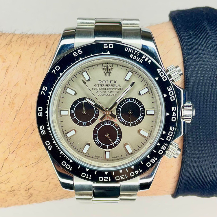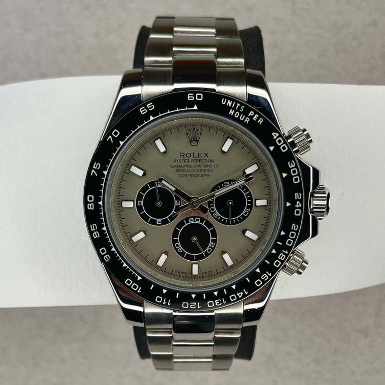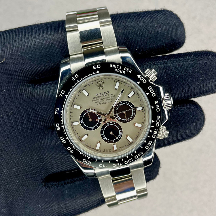 کرنوگرافی بینظیر با طراحی شاخص و نمادین. ساعتی افسانهای با عملکردی بینظیر.Oyster Perpetual Cosmograph Daytona که در سال ۱۹۶۳ معرفی شد، جایگاه نمادین خود را در دنیای ساعتسازی تثبیت کرده است. نمادی از پایداری و استقامت، که در گذر سالها پیوسته بهبود یافته تا همپیمانی قابلاعتماد و دقیق باشد برای تمام کسانی که بیهراس، زمان را از نو آغاز میکنند و مسیر منحصربهفرد خود را در پیش میگیرند.