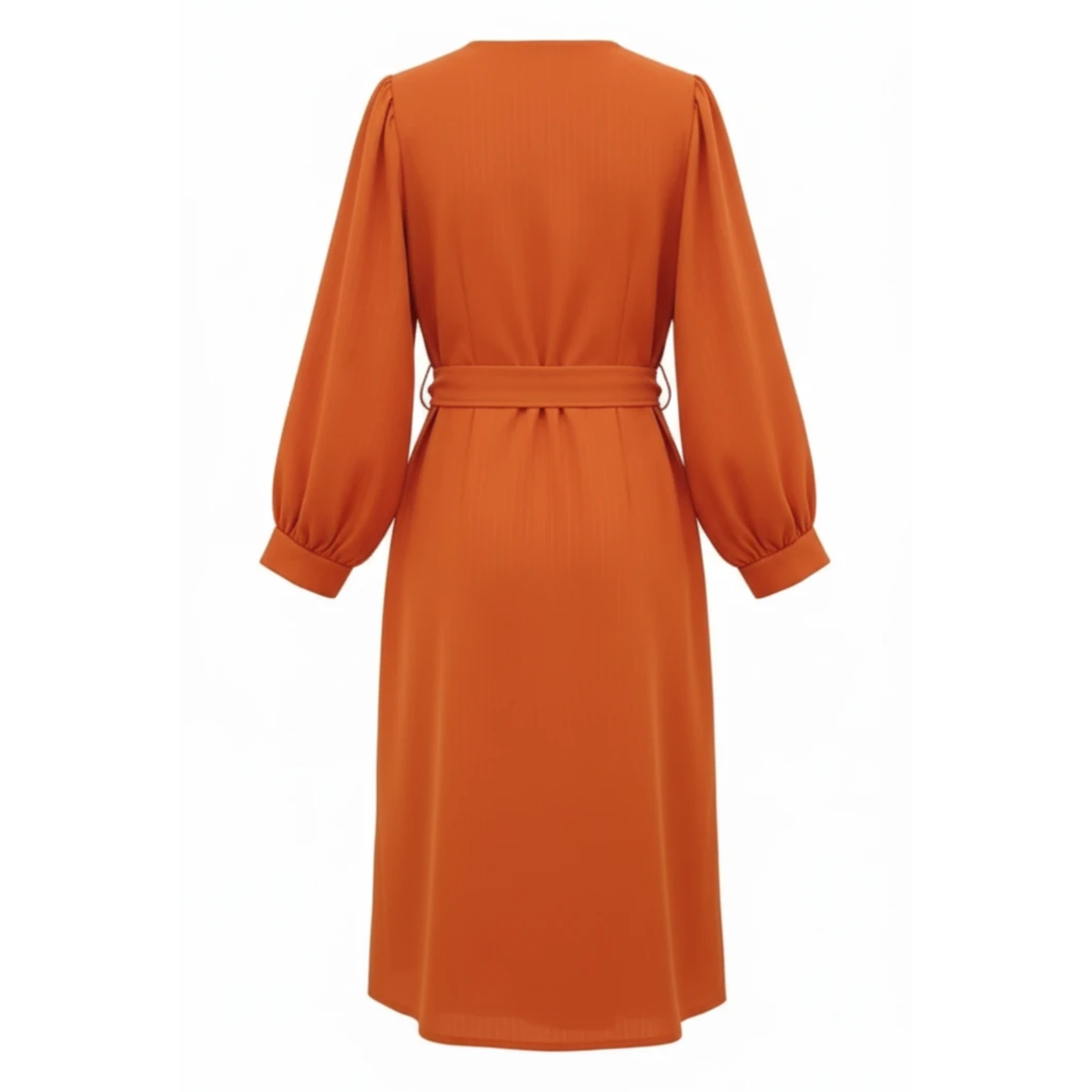 پیراهن زنانه نارنجی با طراحی یقه ژاپنی، انتخابی ایده ال برای خانمهایی است که به دنبال ترکیب زیبایی و راحتی هستند. این محصول با جنس لمه و فرم ساده، مناسب استفاده در مهمانیها و روزمره طراحی شده است. رنگ جذاب نارنجی و جزئیات کمربند، جلوهای خاص به استایل شما میبخشد.