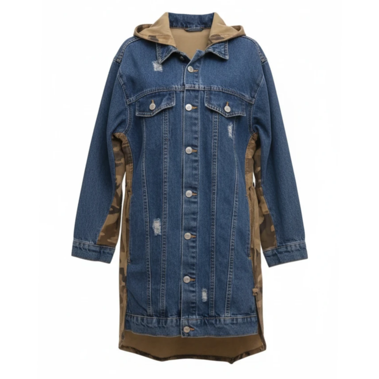 این سویشرت از جنس جین باکیفیت ساخته شده و طراحی آن ترکیبی از طرح جین و ارتشی است که جلوهای مدرن و جذاب به استایل شما میبخشد. یقه برگردان و کلاه دار بودن این سویشرت، آن را به گزینهای مناسب برای روزهای خنک تبدیل کرده است. قد لباس از سرشانه 73 سانتیمتر بوده و عرض آن 46 سانتیمتر است که تناسب خوبی برای استایل ایجاد میکند. نحوه بسته شدن دکمهای و وجود چهار جیب کاربردی، راحتی و کارایی این محصول را افزایش داده است.