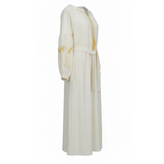 این پیراهن مانتویی با قد ۱۳۰ سانتیمتر و فرم ساده، بهخوبی بر اندام شما مینشیند و ظاهری شیک و مرتب به شما میبخشد. گلدوزیهای ظریف روی آستینها و کمربند همراه آن، جلوهای خاص به این لباس دادهاند. یقه گرد و طراحی بدون جیب، سادگی و زیبایی را در کنار هم به نمایش میگذارد. این لباس با قابلیت شستشو با دست یا ماشین لباسشویی در دمای حداکثر ۳۰ درجه سانتیگراد، نگهداری آسانی دارد و برای استفاده روزمره یا مهمانیها بسیار مناسب است.