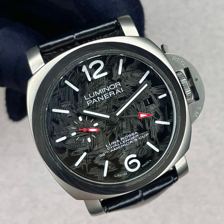 ساعت مردانه پنرای لومینور لونا رزا صفحه مشکی بند چرمی Panerai Luminor Luna Rossa Challenger Automatic