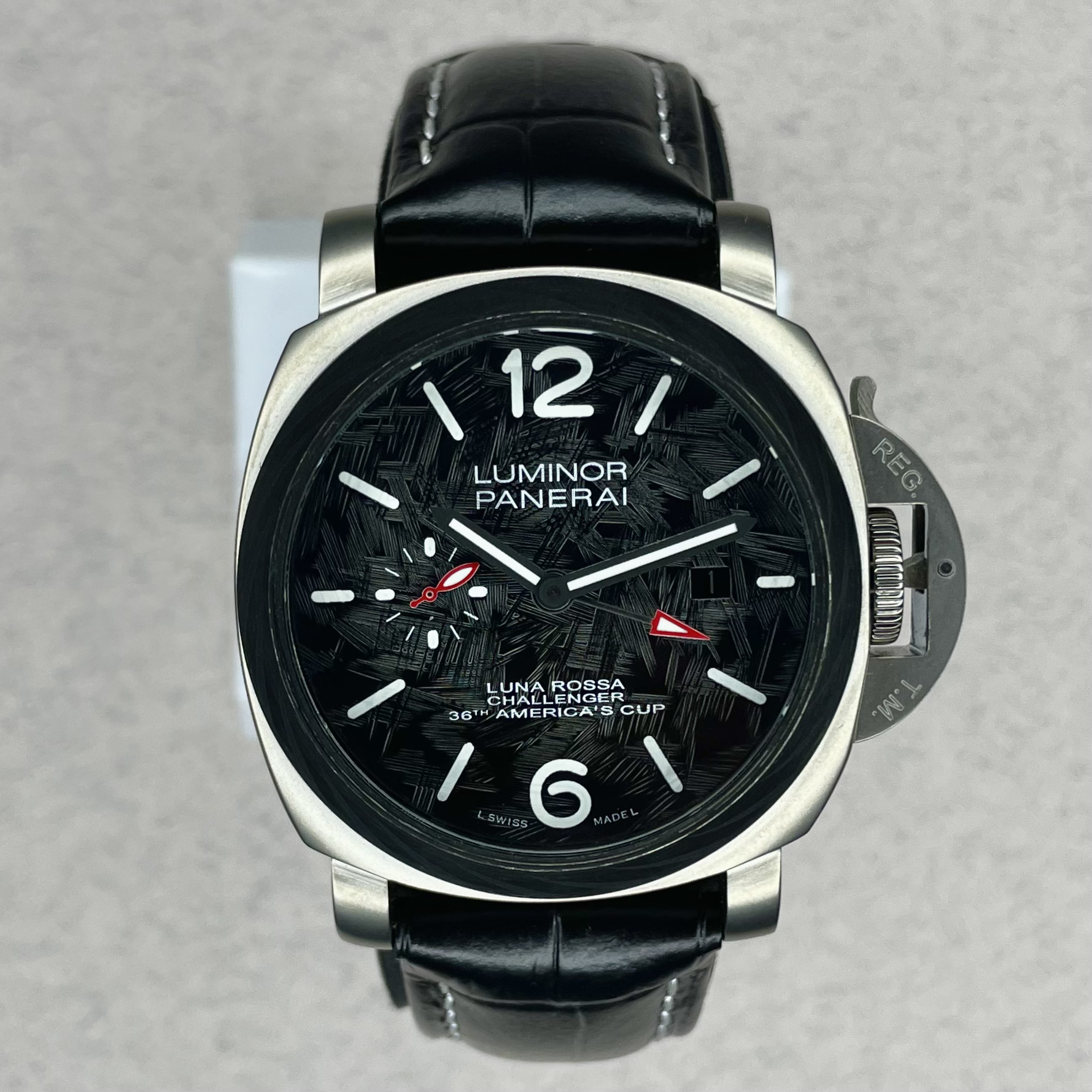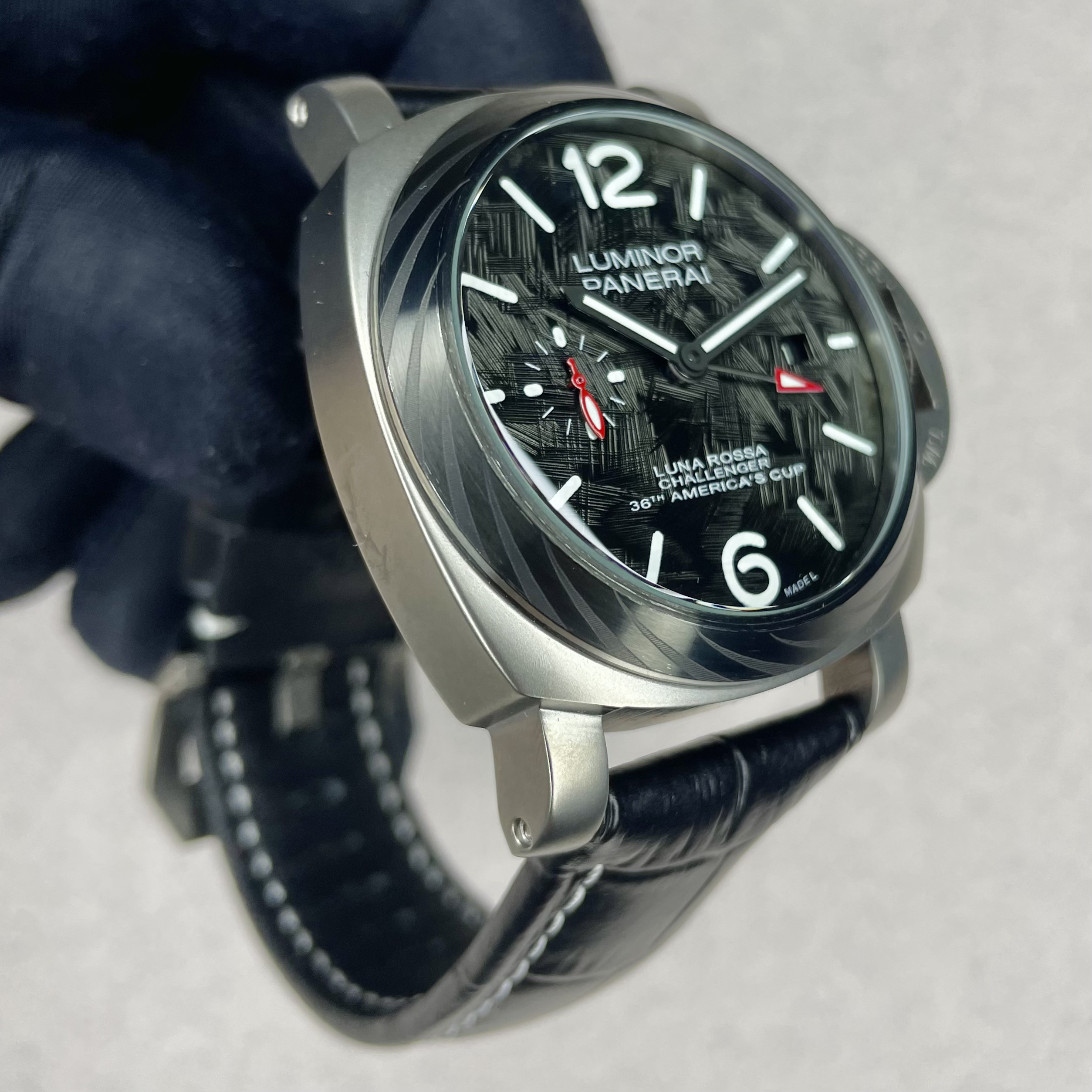 ساعت مردانه پنرای لومینور لونا رزا صفحه مشکی بند چرمی Panerai Luminor Luna Rossa Challenger Automatic
