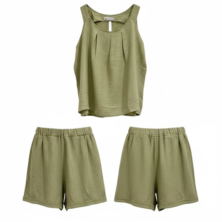 ست زنانه تاپ و شلوارک نخی