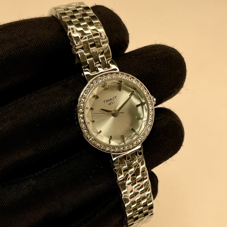 ساعتهای تیسوت با طراحیهای ساده و دقت فنی بینظیرشان، همواره مورد توجه علاقمندان به ساعتها بودهاند. نگین های مخراج کاری شده دور قاب زیبایی ساعت را دو چندان کرده این ساعت مناسب استایل مهمانی و رسمی شما میتواند باشد. از استیل ضدزنگ و ضدحساسیت ساخته شده و بخاطر آبکاری قوی و با ثباتی که بروی بدنه این ساعت انجام شده، کاملا رنگ ثابتی دارد و با شستشو و استفاده مداوم تغییر رنگ نمی دهد.